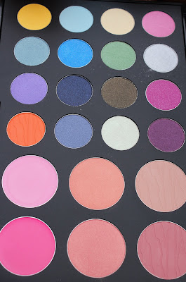Taking a closer look, this palette really does have a fantasic rainbow selection of 16 eye shadows, 4 mineral blushes and 2 lip colours (in a selection of shimmer and matte finishes).