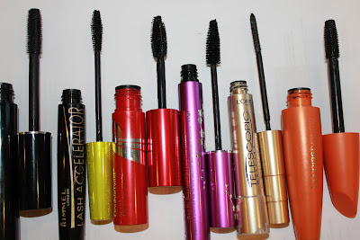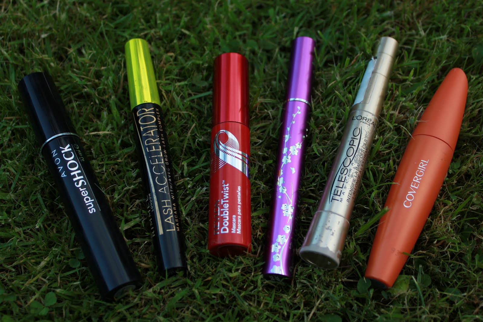 Left-Right: Avon Super Shock, Rimmel Lash Accelerator, Revlon Double Twist, Eyeko Magic, L’oreal Telescopic, Covergirl Lash Blast