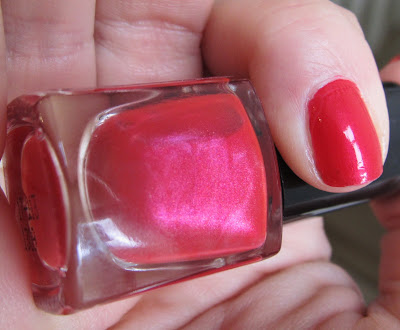 The final shade is a funny one. It’s a bright red/pink with blue-toned pink shimmer. I love the idea of this colour but on the nails, something about it looks slightly cheap… or maybe it’s just me? A pretty toe colour I think.