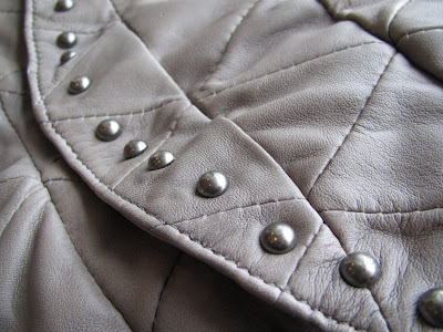 The super soft leather is stitched in a detailed triangle pattern and accessorised with metal stud and chain details.