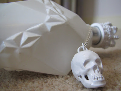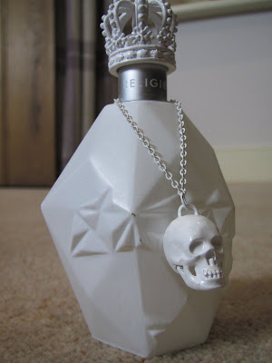 The anaemic-looking, all white bottle and packaging looks somewhat clinical and the angular design and skull adornment is more than reminiscent of Alexander McQueen’s signature designs. None the less it’s a funky, edgy looking perfume that fits the brand’s image perfectly.