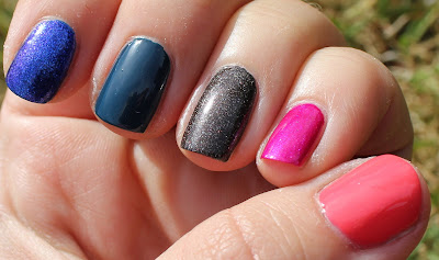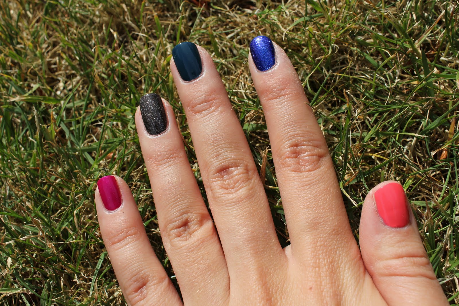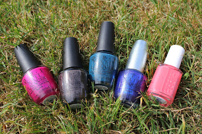 From left to right: OPI Flashbulb Fuschia, My Private Jet, Ski Teal We Drop, DS Magic, Essie Cute as a Button