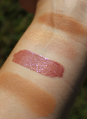 (Top to bottom: Delice de Soliel Bronzer, Intense Eyeshadow (2), Effet 3D Gloss (Brun Exotic), Delice de Soleil Foundation (Shown mixed 50/50 bronzer & foundation in Fair/Medium)