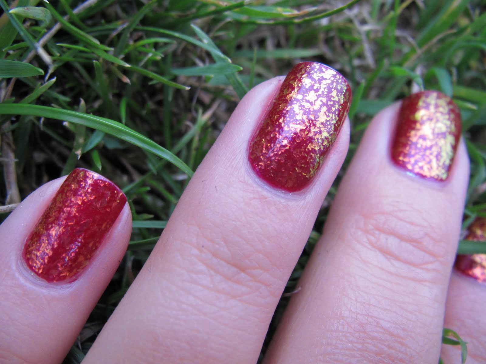 It looks kind of fiery and I like it! I’m loving the Gemstone Overcoat at the moment, it gives a similar effect to glitter, but it’s a little more interesting and a lot easier to remove!