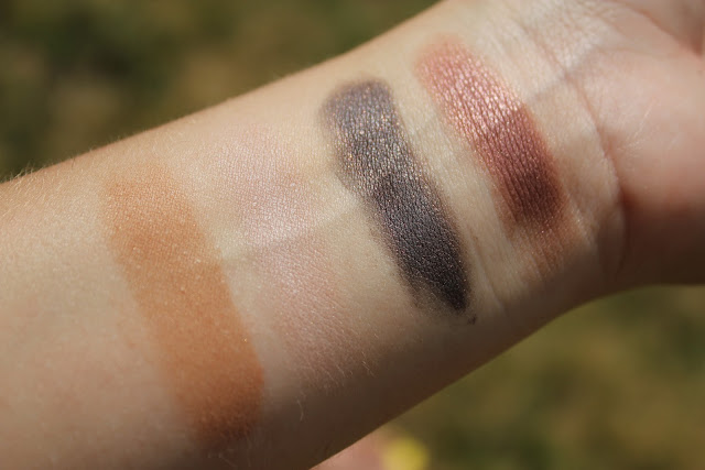 L-r: Bronzer in Brown Sugar, Eyeshadows in Flax Seed, Fig and Cocoa Plum.
