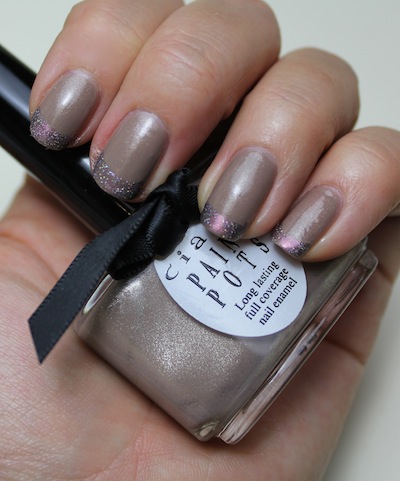 Ciate’s lovely Cream Tea, a brown-taupe with a tiny hint of silver shimmer tipped with my current favourite Nubar Gem, a lilac-taupe with fine holographic glitter.