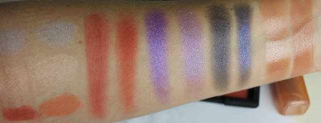 Clockwise from top left: Sleek Blush in Coral, NARS Blush in Liberte, NARS Eyeshadow Trio in Ramatuelle, MUA Pastel Palette (Great dupes for the paler shades – more on this later in the week!), NARS Lip Pencil in Buenos Aires, Revlon Lip Butter in Creme Brule, NARS Eyeshadow Duo in Marie-Galante, MUA Eyeshadows in Shades 9 and 10.