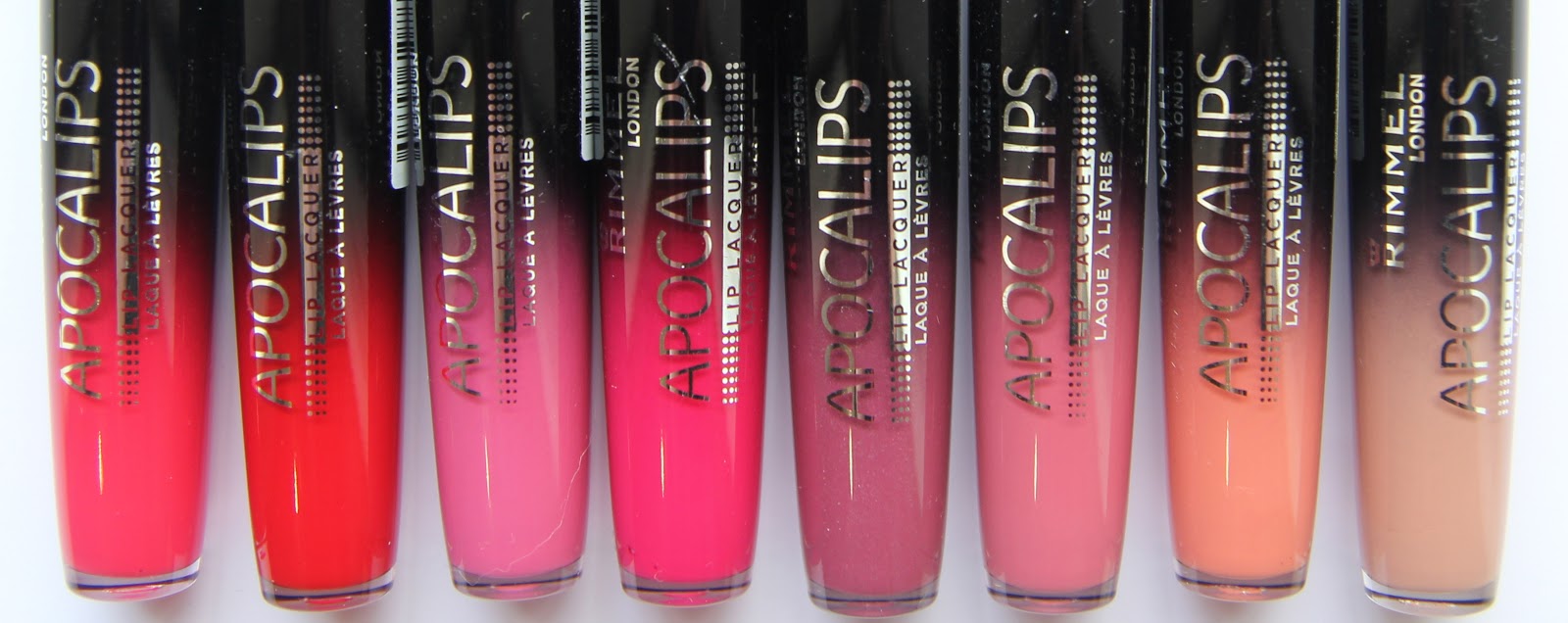 They are Rimmel’s new Apocalips lip laquers. There are 8 colours in the range, from red to nude.