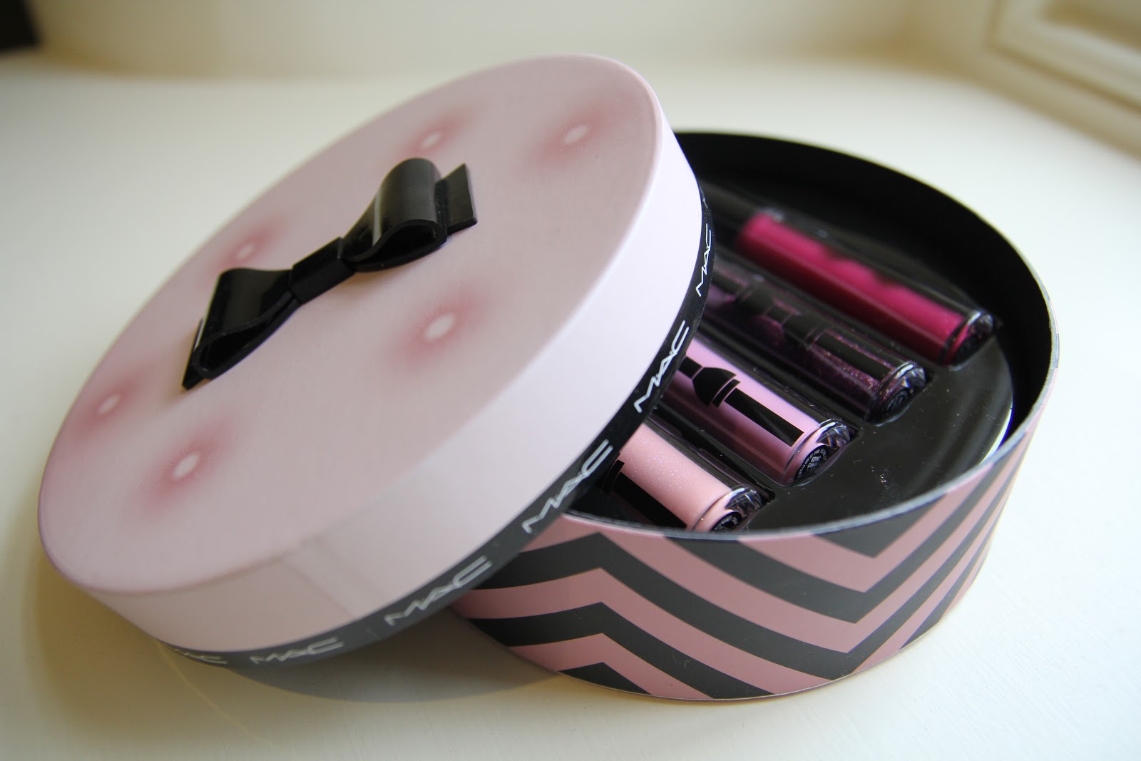 It’s the ‘Lavish Rose’ lipgloss quartet from MAC’s ‘Guilty Passions’ Holiday collection. There are four different miniature lipglosses housed in what is possibly the cutest packaging in the world!