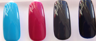 The outcome is really wonderful. These polishes are richly pigmented, opaque in one coat and have a super glossy, gel-like finish. It seems that Rimmel can do no wrong with their new products at the moment, this collection coming hot on the heels of their wonderful Apocalips lip lacquers, Scandal Eyes eyeliners and new Lash Accelerator Endless mascara.