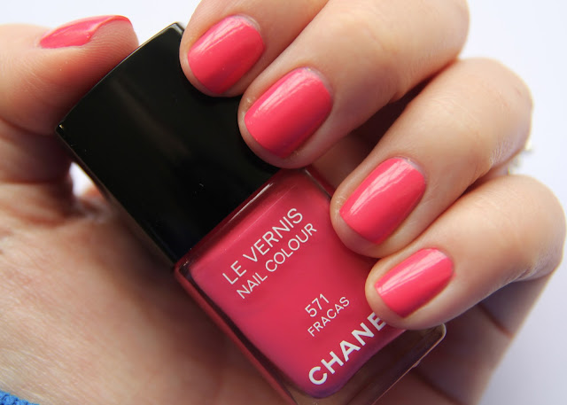 Fracas is a pretty bright pink with a hint of coral and a tiny touch of shimmer. It’s quite similar to Essie’s cute as a button, but a little bit more vibrant.