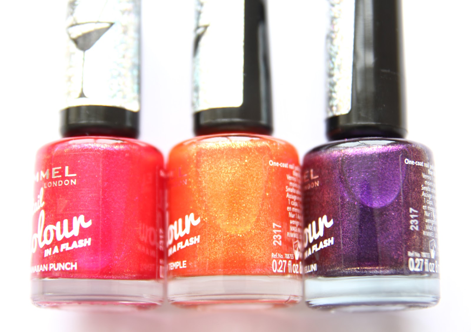 Shirley Temple, Hawaiian Punch and Baby Bellini (l-r as shown above) are part of the ‘Cocktail Colour’ collection. All three have a gorgeous multi-tonal shimmer that gives them a hint of a duo chrome look.