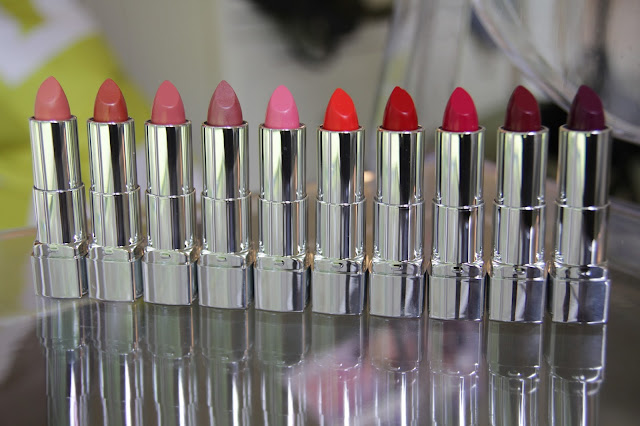 The 10 new shades are a good mixture of neutrals and brights. As you can see they have also changed the packaging. I like the new clear purple casing but have to admit, it reminded me a lot of Maybelline’s signature lipstick packaging. It definitely feels a bit cheaper then some of my other Rimmel lipsticks but that doesn’t really bother me. It’s what’s inside that counts…