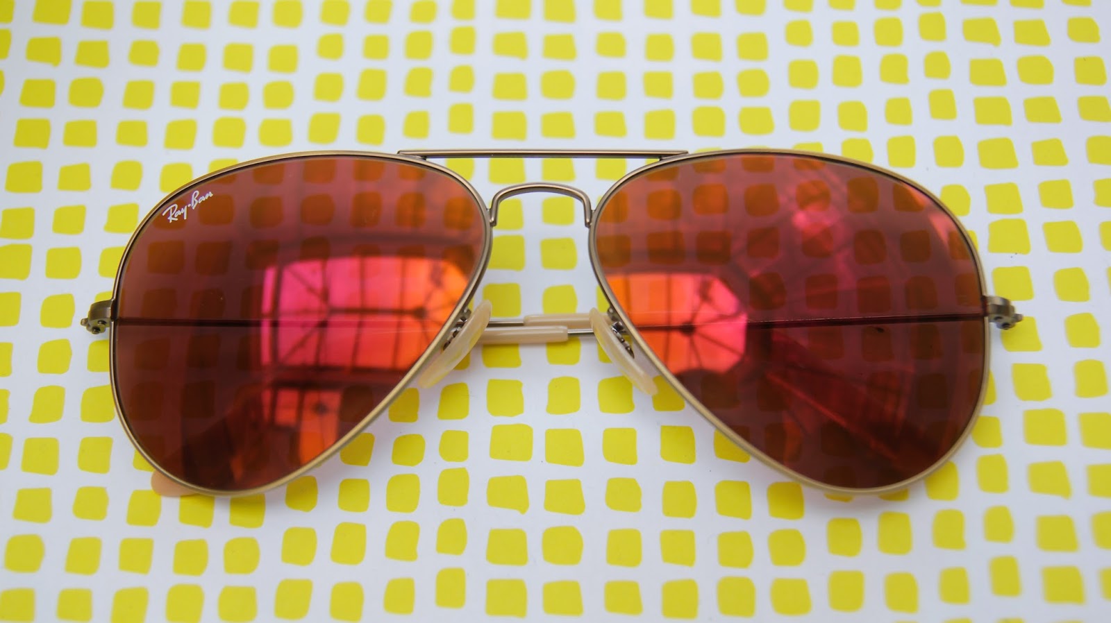 My first favourites are from Ray Ban. I absolutely love the classic aviator shape, and tend to go for more masculine shapes when it comes to sunglasses. I’ve been eyeing up their brightly coloured reflective lenses for a while as I think they are a fun twist on a classic, but this combination of an antique gold frame and red/pink/orange duochrome lenses is my ultimate favourite…