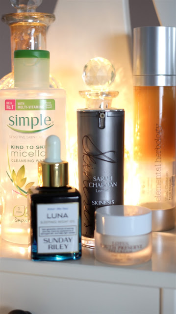 These three combined with my existing skin arsenal of Simple’s Micellar Water (the best for removing all my makeup before cleansing) Sarah Chapman’s Morning Facial Oil (a super gentle, yet rich a nourishing morning facial oil) Elemental Herbology Vital Cleanse cleanser (I love this as it cleanses really deeply yet doesn’t strip the skin at all and is formulated with naturally antibacterial manuka honey so especially great for breakouts) Sunday Riley’s Luna Oil (a beautifully effective night time retinol oil that doesn’t make my skin dry or sensitive but still delivers results) and Fresh’s Lotus Youth Preserve Eye Cream (which is nourishing, yet still cooling on the eyes and not too heavy, so it sit’s really well under my makeup)