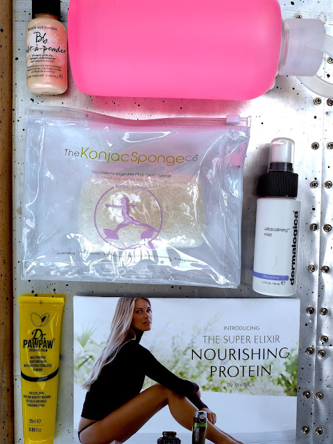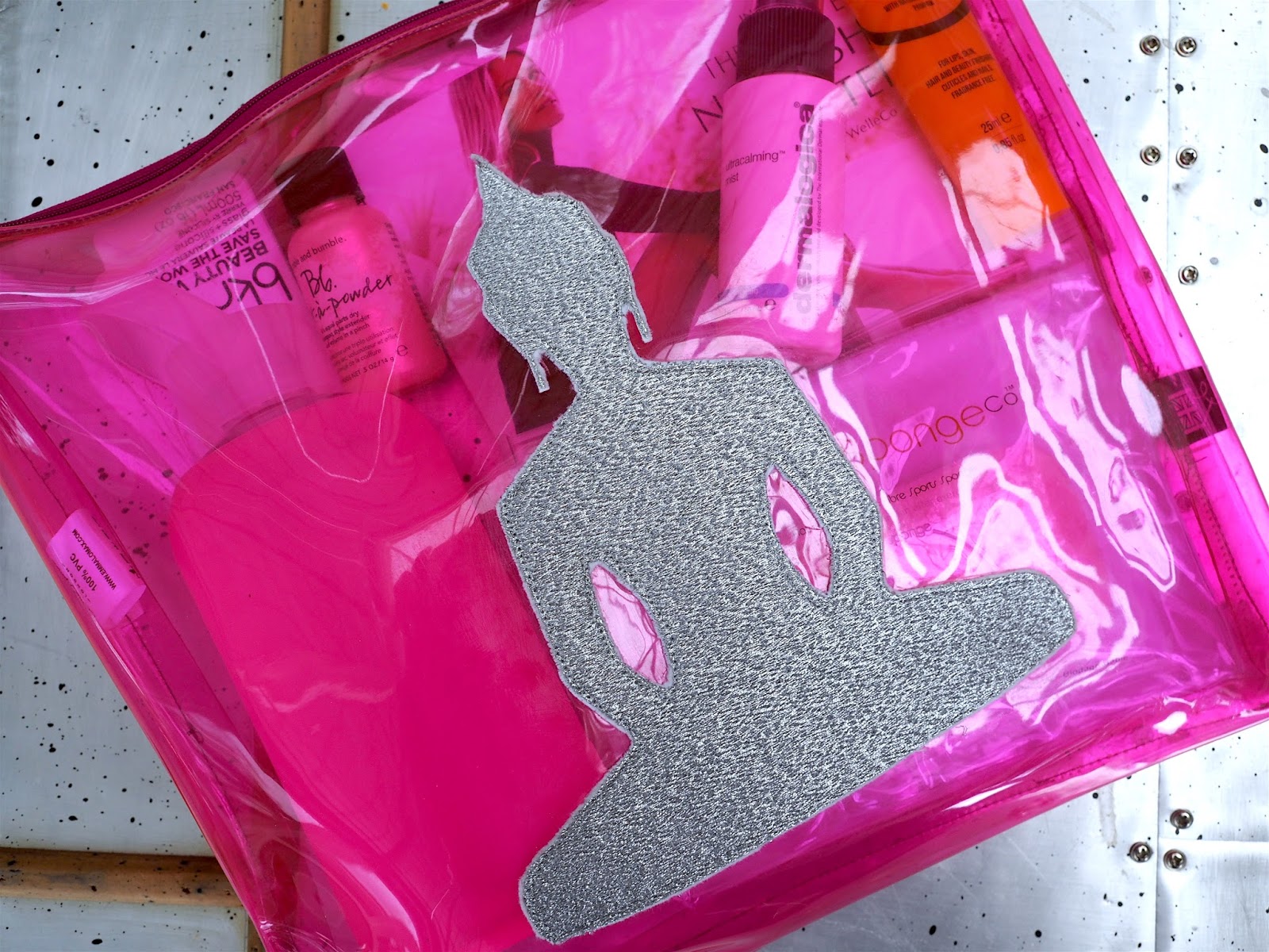 This bag is my personal favourite looks-wise, being pink with a silver bhudda, but I think in terms of contents this excites me the least and also has quite a few less products than the other two kits. It really depends on your interests though as this has a few full sizes/more lifestyle items including the much-talked-about Super Elixir Protein (a sample size which I think is a single portion) a body version of the Konjac sponge (I have and love the face version) and a bkr water bottle. This kit is the least beauty-centric.