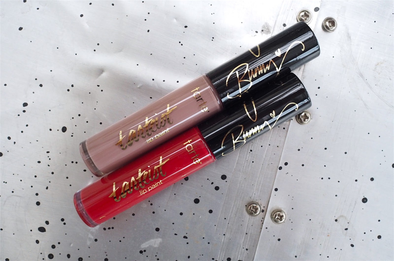 Bunny has also created two Lip Paint matte liquid lipsticks in Swamp Family (a classic blue-red which is lovely if you’re looking for a new red to add to your collection) and Texas Toast (a grey/lilac toned nude which is not flattering on me personally but very ‘Bunny’ – It looks great on her in her recent reveal video!) I love that they’ve put Bunny’s signature in gold on the packaging for these, it looks lovely! These are £14 or $20 each. The texture of Tarte’s matte Lip Paints is really nice as they aren’t too drying, but I have to say… for me the palette is the showstopper of the collaboration!