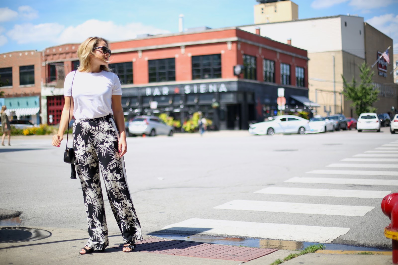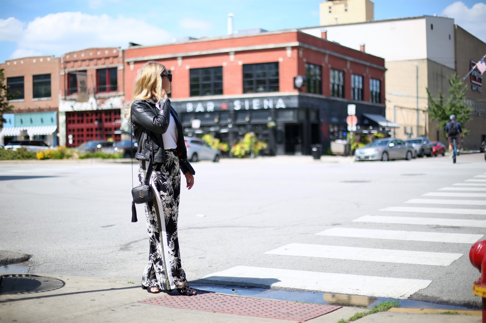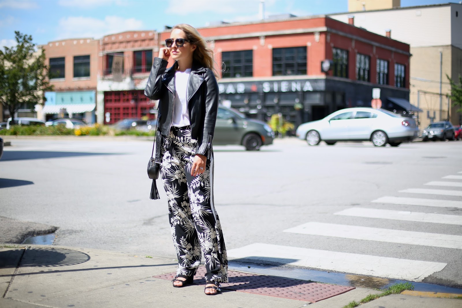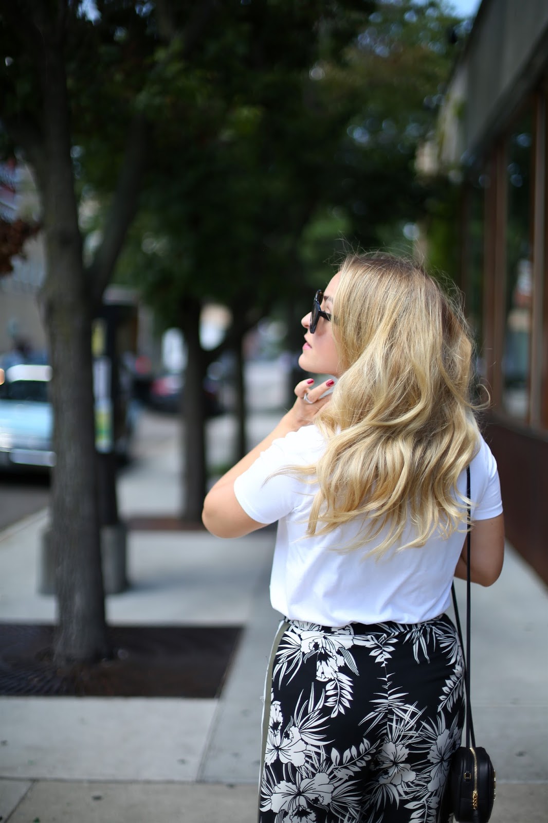 The latest addition to my wardrobe are these floral numbers from Topshop. A few months ago I wouldn’t have looked at these twice, but now I absolutely love them… high waisted, wide legged and with a flattering double stripe running down the length of the leg, they are not only comfortable and easy to wear, but they are a perfect day-to-night option too. You can dress them down with a white tee and leather jacket like I have, or pair them with a smarter white, collared shirt for the evening.