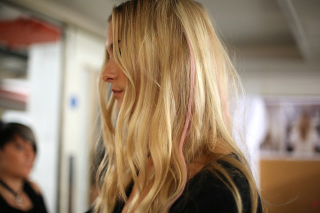 I was therefore super excited to see a bit of colour back on the runway for this show, in an incredibly subtle, sexy and sophisticated way. The Moroccanoil team dyed single clip-in hair extensions in shades of pastel pink and placed them in the mid-lengths of the models’ hair. The hair was then blow dried in a messy, disheveled way, allowing the flashes of colour to peek through. The result was so cool, I think this definitely going to be my next foray into colour… As much as I’d love a full head of pink hair, it’s simply too high maintenance for me, not to mention too much of a dilemma when it comes to choosing outfits too!